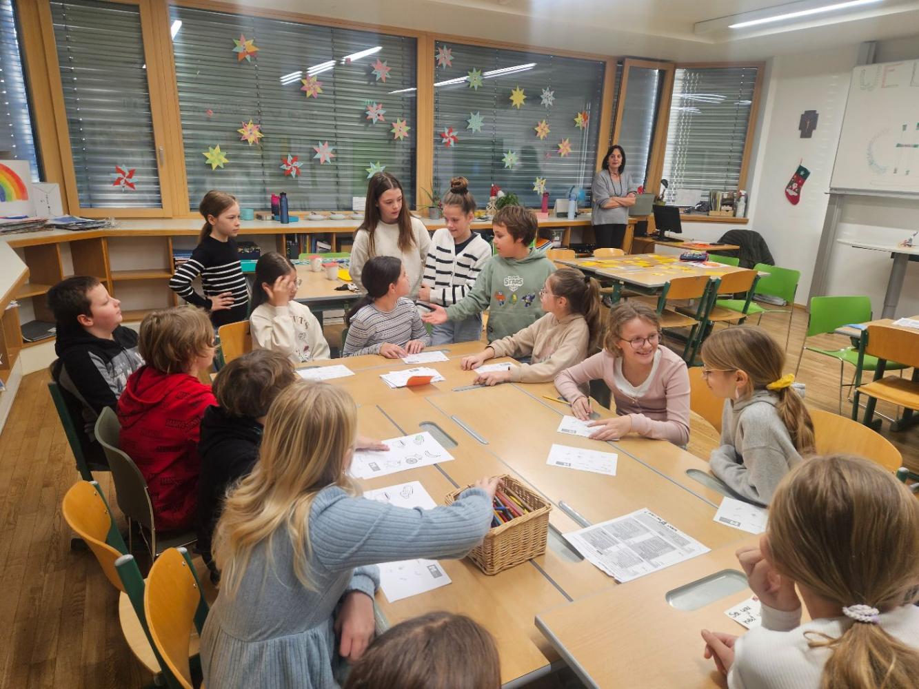 75 VolksschülerInnen der vierten Klassen aus Inzing, Hatting und Polling waren am Tag der offenen Tür willkommene Gäste. In Kleingruppen wurden sie von unseren Guides aus den vierten Klassen durch das Schulhaus begleitet und erlebten, dass Schule spannend und abwechslungsreich sein und Spaß machen kann.