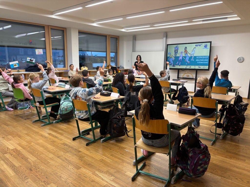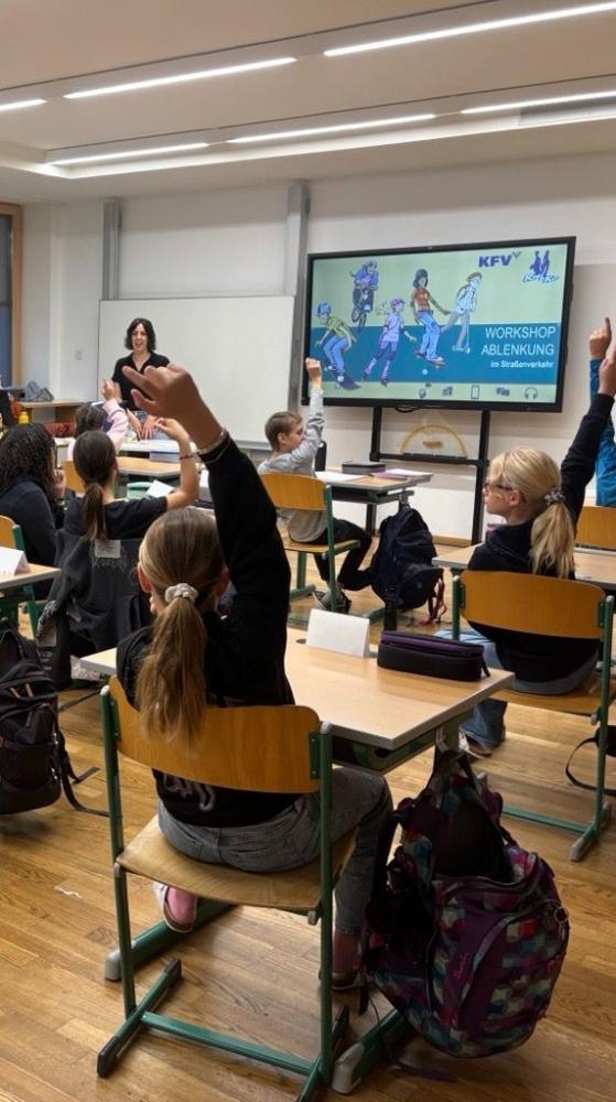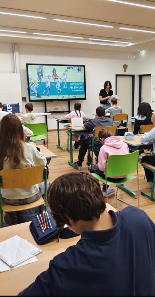 Wir, die Klasse 2c, bekamen am 13.10.25 Besuch vom Kuratorium für Verkehrssicherheit. In einem zweistündigen Workshop hat sich eine nette Frau namens Hannah Zeit für uns genommen und uns alles erklärt, was wir zum Thema Ablenkung im Straßenverkehr wissen müssen.